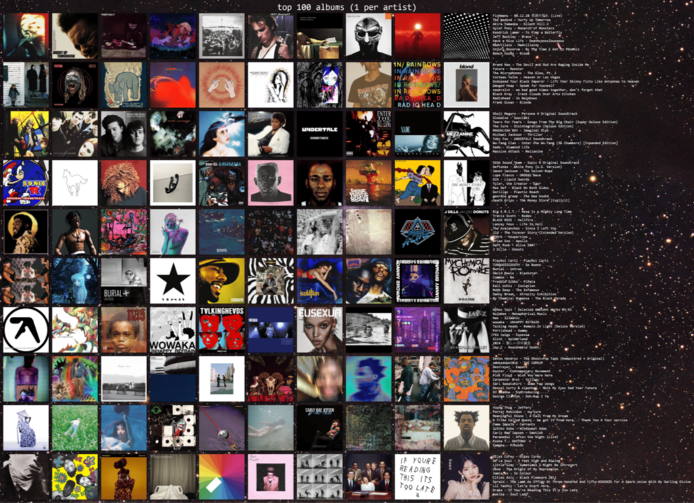 favorite artists: the weeknd, vylet pony, deftones, future, kendrick lamar, beach house, cocteau twins, travis scott, the cure, wu tang clan, jpegmafia, burial, fishmans, mf doom, young thug, little simz, kali uchis, daft punk, playboi carti, fka twigs